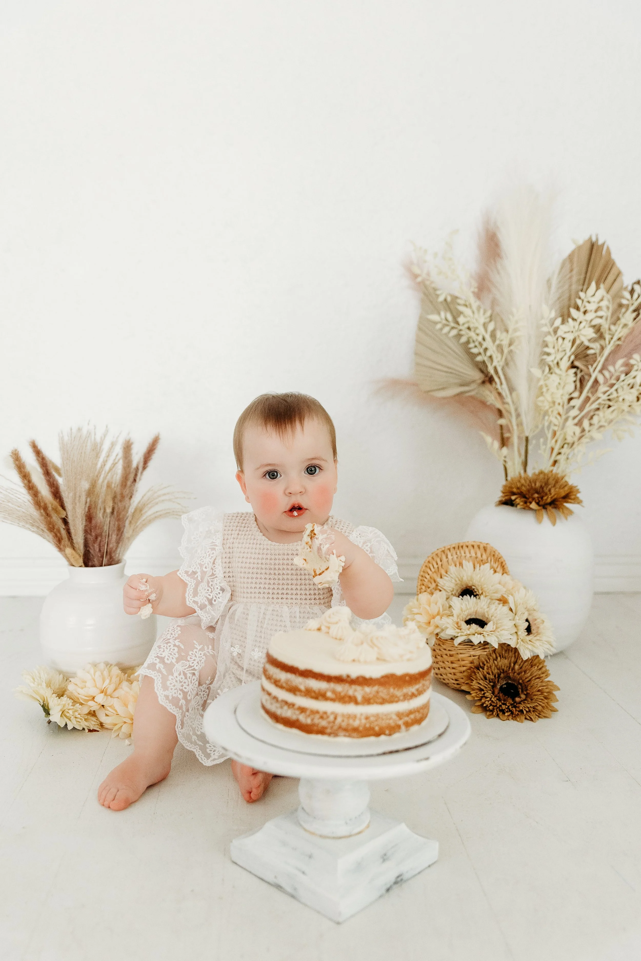 **Cakes are also allowed for both packages if desired. Please bring your own cake or reach out to me about the option to provide a cake. I encourage you to do a simple white cake for milestone sessions.